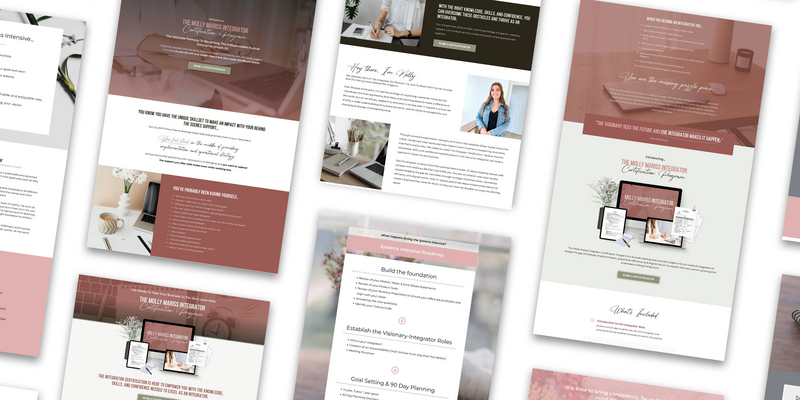 Molly was ready for a sales page that felt professional, but also feminine and true to her brand. For her Integrator Certification, we showcased her program in a clear, engaging way that spoke directly to VAs, OBMs, and freelancers ready to grow. We also designed a Services page for her done-for-you Intensive, giving her offer a clean, easy-to-navigate space that makes clients excited to say āIām in.ā
